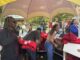 After the presentation concluded, attendees were invited to get a plate of food from a free buffet. They offered options such as chicken-fried rice, sesame chicken, and dumplings.
