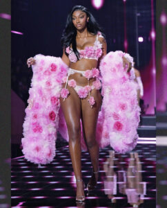 The model lineup for the show was different from past years. While the show still featured iconic VS angels such as Adriana Lima, sisters Gigi and Bella Hadid, Candice Swanepoel, Alessandra Ambrosio, and Irina Shayk, it also welcomed newcomer models in the form of Olympic athletes and influencers. The array of models of different gender identities, body types, and ethnic backgrounds made the runway more inclusive than ever. Traditionally, VS is known for tall and very thin models, but this year the runway celebrated diversity in every form.