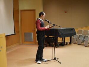 Throughout the event, the English Interns were seen taking the lead and initiative, assuring that the event ran smoothly. They eagerly took turns introducing each performer, applauding, and giving their complete undivided attention.