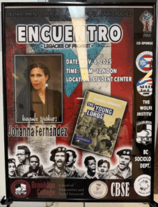 Poster of Johanna Fernandez’s panel for Encuentro hung outside Amesfort & Bedford Student Center/Courtesy of Renae Visico.