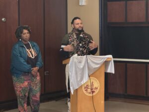 The screening opened up with introductory remarks from Kelly Spivey, the Director of BC’s LGBTQ+ Resource Center, and Spivey welcomed Sekiya Dorsett, the director of “Caribbean Queen,” to the podium.