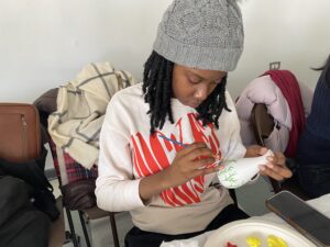 “Since Christmas is coming up, I just wanted to make […] a little something for my mom because she […] loves flowers and she loves faces and stuff. Her favorite color is pink, so that’s what inspired my design or pattern,” attendee Shania Persaud told The Vanguard.