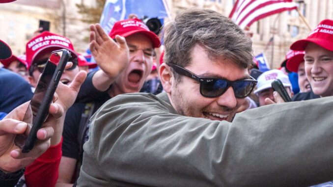 Nick Fuentes greets supporters before speaking at a pro-Trump rally./Courtesy of CBC News